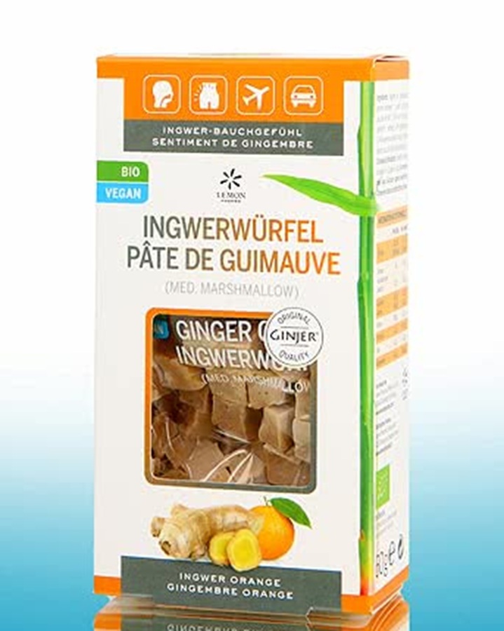 Наши органические имбирные кубики (зефир/маршмеллоу), изготовленные из гуммиарабика растительного происхождения (из африканской акации сенегальской), особенно хорошо сочетаются с экстрактом имбиря.
